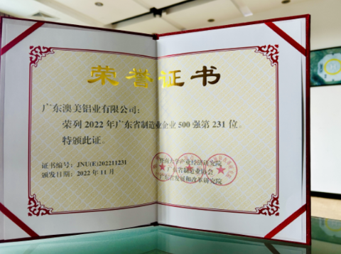 近日,在廣東省制造業(yè)協(xié)會(huì)發(fā)展年會(huì)暨廣東省制造業(yè)500強(qiáng)企業(yè)峰會(huì)上,公司獲評(píng)為2022年廣東省制造業(yè)500強(qiáng)企業(yè),位列第231位。該榜單通過(guò)公開(kāi)數(shù)據(jù)采集調(diào)查及核實(shí)等方式獲取年度數(shù)據(jù),并由主辦方組織專家對(duì)申報(bào)企業(yè)進(jìn)行實(shí)地考察,按照入圍條件和參照國(guó)際通行評(píng)價(jià)準(zhǔn)則,經(jīng)評(píng)審專家委員會(huì)審定發(fā)布。